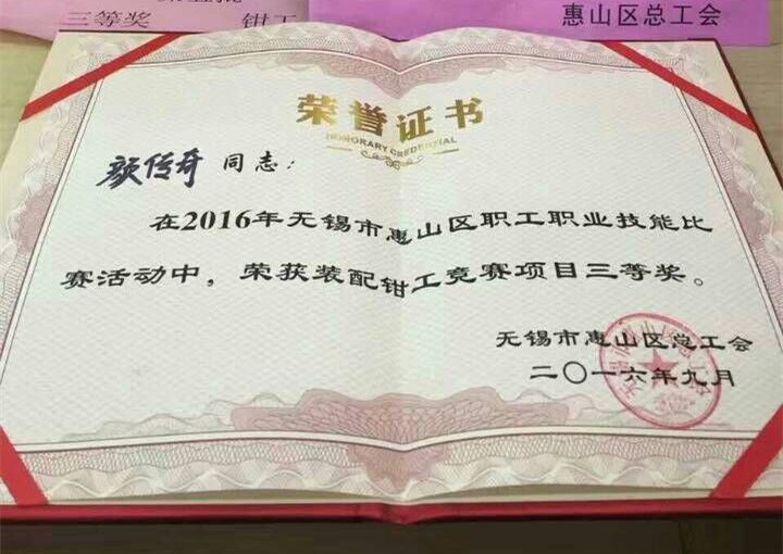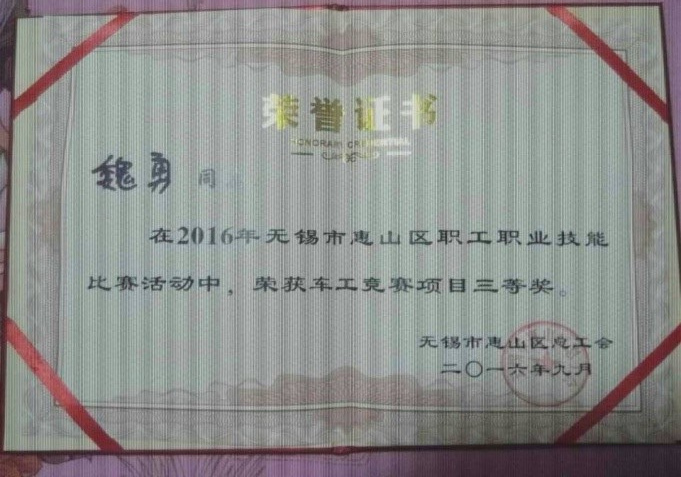 我司總裝車間顏傳奇、金工車間魏勇在初賽中脫穎而出,作為陽山鎮(zhèn)代表參加此次惠山區(qū)職工職業(yè)技能大賽,并雙雙獲得三等獎。